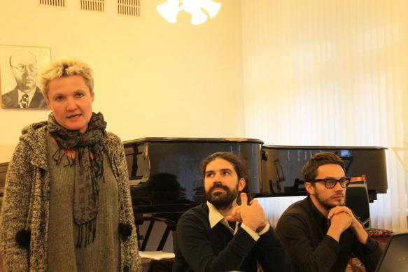 «Мы хотим найти способы взаимодействия с преподавателями и студентами всех стран. Пытаемся наладить каналы обмена опытом», - говорит Рубен Вега Балбас. В течение нескольких часов они рассказывали о том, как развивается музыкальная индустрия в их стране, как проходит обучение в школе композиторов и исполнителей. Уникальной особенностью своей программы Александр и Рубен считают продолжительный личный контакт преподавателя, а, как правило, это знаменитые композиторы, со студентом. В конце обучения молодые люди представляют на суд профессионалов написанную совместно с преподавателем музыку и участвуют в различных конкурсах и грантах.