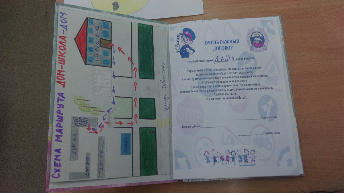 В договоре сказано: «Дорогие папа и мама, пожалуйста, обещайте мне всегда и везде возить меня в автомобиле с применением детского удерживающего устройства, а также приобрести мне световозвращающие элементы, что бы водители видели меня в темноте! И сами, пожалуйста, всегда и везде пристегивайтесь в автомобиле ремнями безопасности и носите одежду со световозвращающими элементами, так я буду знать, что Вы в безопасности. Спасибо Вам за то, что меня так сильно любите!!!».