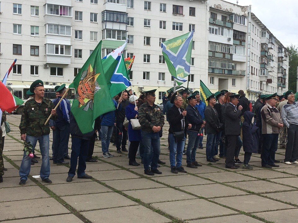Празднование началось с торжественного шествия. Ветераны пограничных войск вместе с семьями прошли колонной от площади Карла Маркса до площади Победы, где и прошёл торжественный митинг.