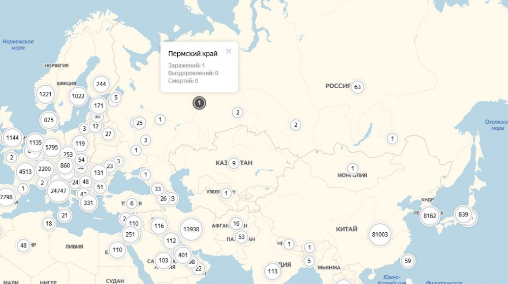 Интернет-сервис «Яндекс» создал онлайн-карту распространения коронавируса по миру и России.