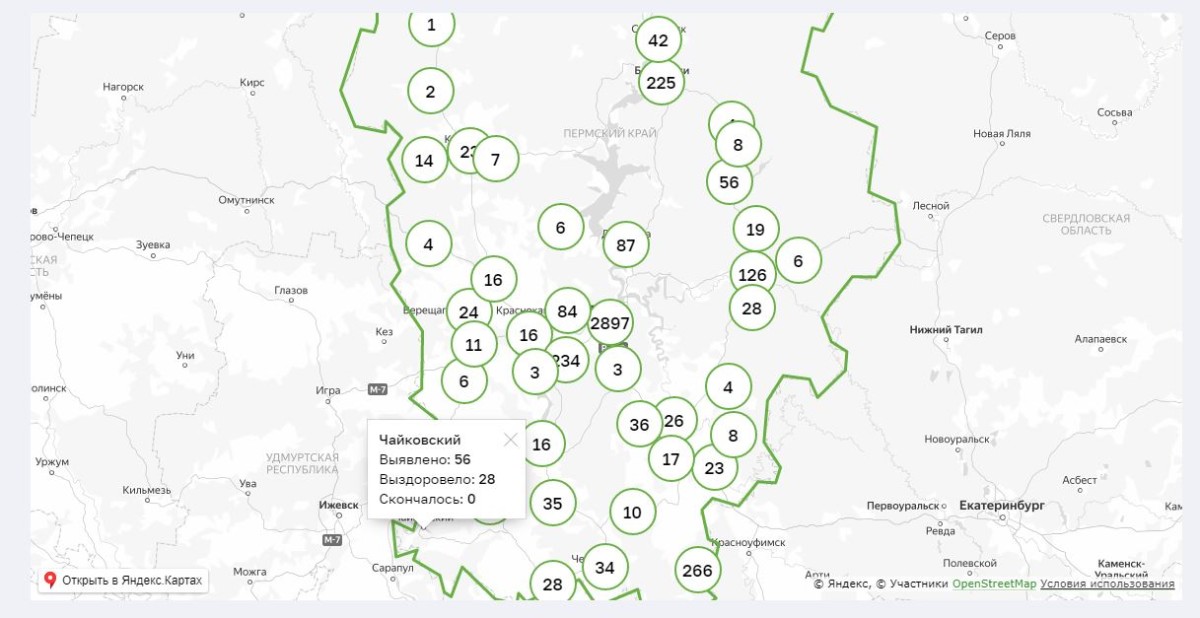 По данным пресс-службы администрации ЧГО, на 14 июля общее число подтверждённых случаев заболевания COVID -19 в Чайковском округе возросло до 56 человек, т.е. за прошедшие сутки выявлено ещё два новых случая заболевания коронавирусом. Число оправившихся от болезни по-прежнему остаётся 28 человек.