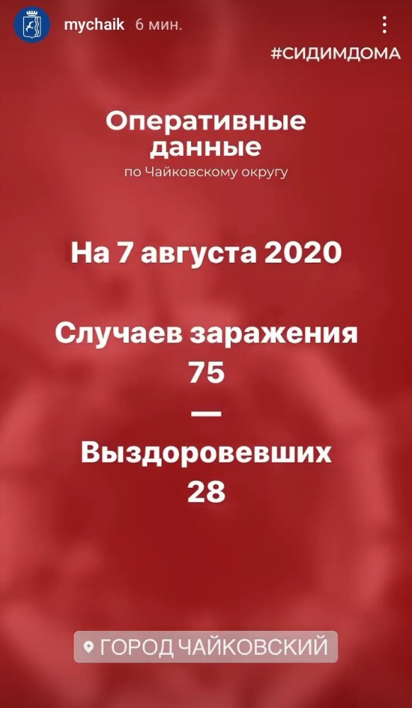 По данным пресс-службы администрации ЧГО, на пятницу 7 августа общее число подтверждённых случаев заболевания COVID -19 в Чайковском округе остаётся прежним - 75 человек, т.е. за прошедшие сутки не выявлены новые случаи заражения. Число выздоровевших, по данным мэрии, также остаётся не изменным - 28 человек.