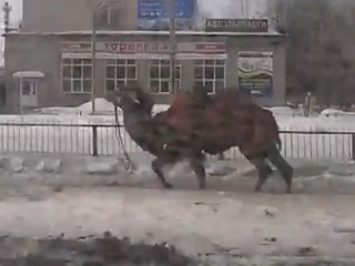 В центре города по улице Куйбышева верблюд преследовал лошадь. Людей и дрессировщиков поблизости не было.