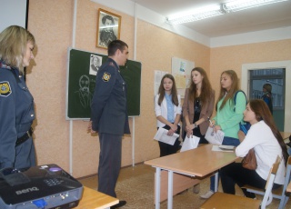 В ходе встречи стражи порядка рассказали школьникам о службе в правоохранительных органах, о том какие требования предъявляются к сотрудникам полиции, о социальных гарантиях и выплатах. Девятиклассники получили возможность задать все интересующие их вопросы, связанные с поступлением на службу в полицию.