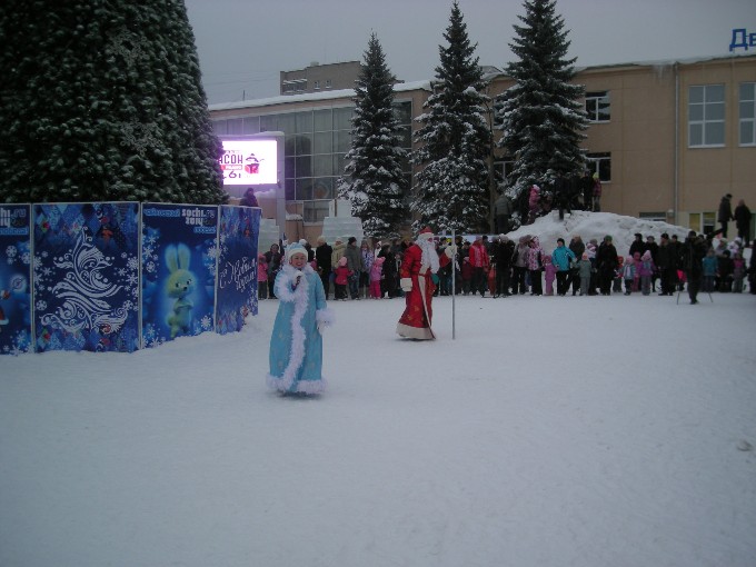 Здесь же работали сразу несколько игровых площадок. По всей площади царила веселая кутерьма. Заезды на корытах, веселые старты, катание с горок, прохождение ледового лабиринта заражали позитивом и вовлекали в водоворот веселой деятельности. Особый восторг горожан вызвал забег Дедов Морозов и Снегурочек. Новогодние персонажи преодолевали дистанцию под бурную поддержку зрителей и получали заслуженные призы. Кульминацией праздника стало зажжение огней на новогодней елке и завораживающее огненное шоу гостей из Ижевска «Огнелайт».