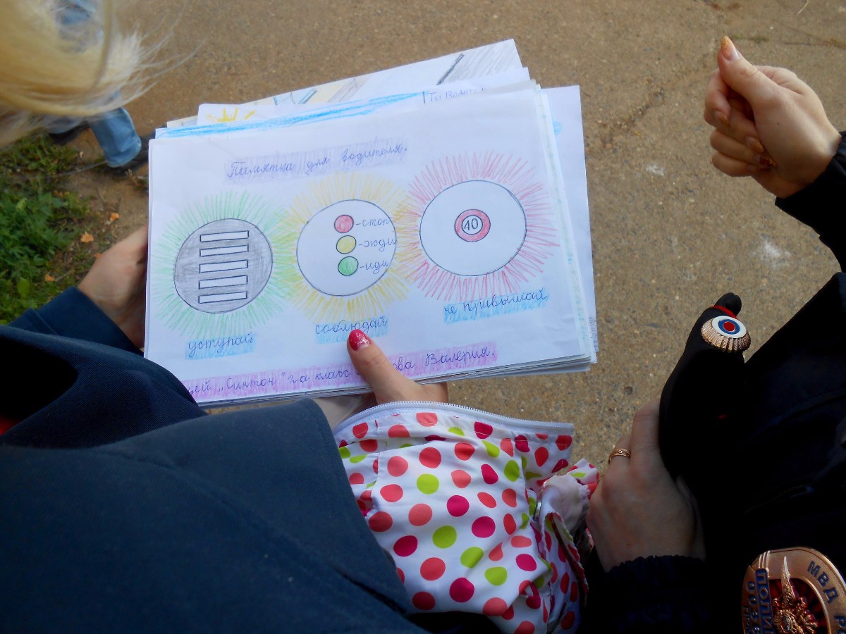 Совместная акция ГИБДД и отделения по делам несовершеннолетних, а также детей, предоставивших свои рисунки для акции «Внимание, дети!», стала неплохим напоминанием для водителей о необходимости соблюдения правил дорожного движения. На рисунках, которые им дарили дети, были изображены правила поведения на пешеходных переходах, как для водителей, так и для пешеходов.