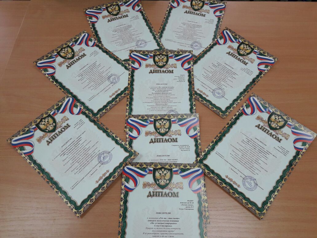 В номинации « Всё зависит от тебя» лучшей работой стал рисунок Рымановой Ясении МБДОУ д/с № 17 «Ромашка». В третье номинации «Сохраним родную природу» победу разделили семья Толстобровых «Зелёная планета» МАДОУ ЦРР – д/с № 24 «Улыбка» и Исламов Алмаз «Берегите нашу землю» МАДОУ ЦРР – д/с № 24 «Улыбка».